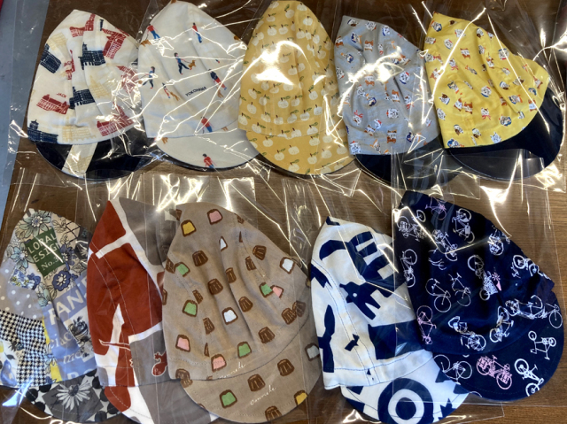 京都西陣にお店を構える縁さんによるハンドメイドのサイクルキャップ。丁寧な仕立てと遊び心ある柄合わせが楽しい、MADE IN KYOTOのキャップです。頭囲55~59cm。日本製。