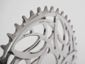ナローワイド形状の歯先を採用したことで、フロントシングルでもチェンの脱落を心配することなく走行できます。小さめの歯数は10/11速11-36T、11-40Tなどのワイドレシオなカセットスプロケットと組み合わせることで多様な地形に対応します。